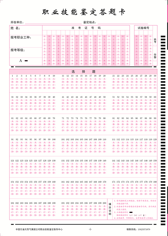產品標題:職業技能鑒定答題卡