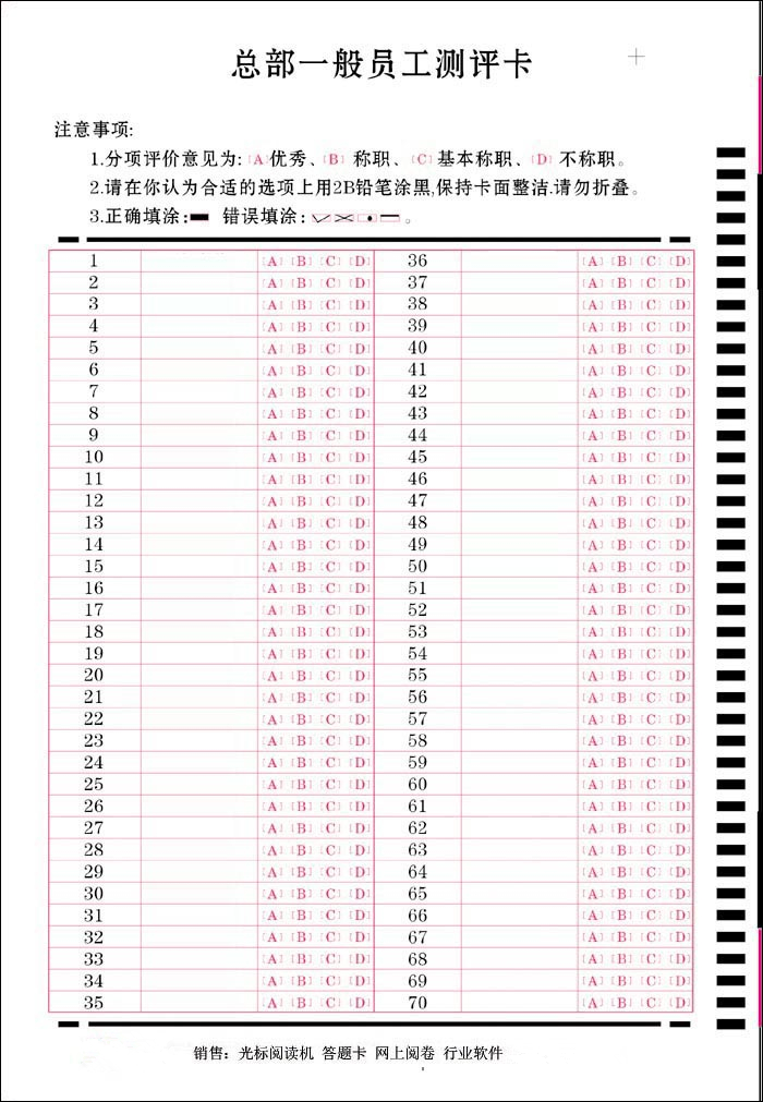 因?yàn)椋灾档眯刨嚕簽榱藢?shí)現(xiàn)數(shù)據(jù)的準(zhǔn)確識別,品科答題卡要按一定的格式與方法進(jìn)行設(shè)計(jì),設(shè)計(jì)人員需經(jīng)過培訓(xùn),才能設(shè)計(jì)出有效的信息卡。